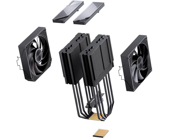 Кулер JONSBO CA90 Black LGA1851/1700/1200/115X/AM5/AM4 ( TDP 270W, PWM, 130mm Black Fan + 120mm Black Fan, 6 тепловых трубок, медная база, 4-p