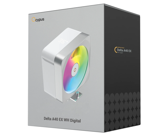 Кулер Ocypus Delta A40 EX WH Digital, 120mm ARGB Fan, Top Display Panel, 4 Heat Pipes, 4-PIN PWM, 500-1800 RPM, 29DBA, Hydro Bearing