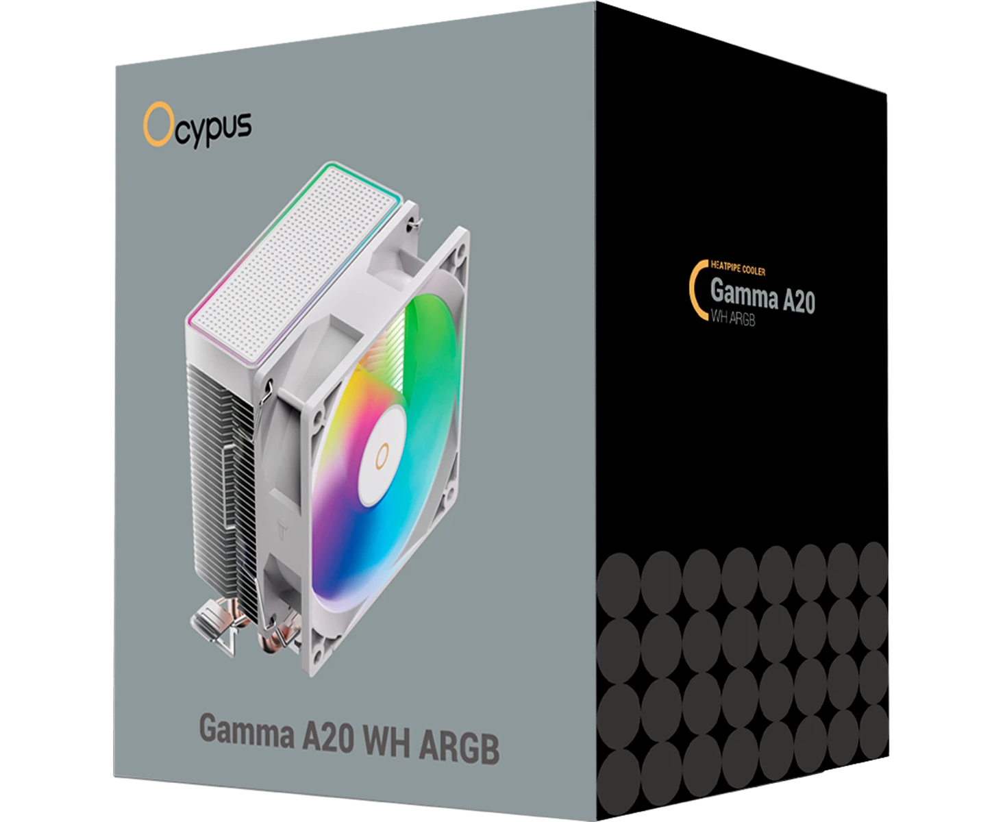 Кулер Ocypus Gamma A20 WH ARGB, 92mm FARGB Fan, Top FARGB Panel, 2 Heat pipes, 3-pin, 1900 RPM, 21DBA, Hydro Bearing, LGA115X/1200/1700