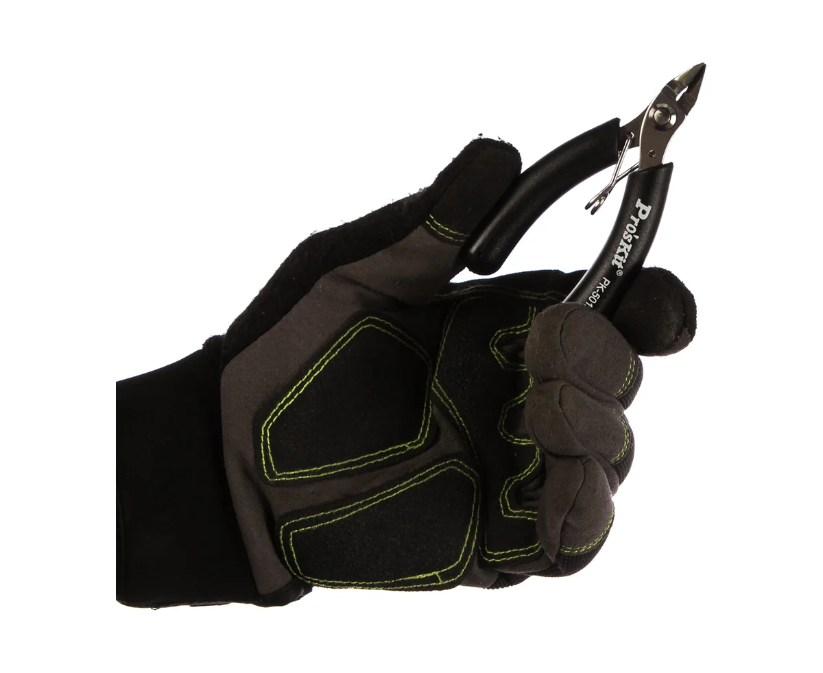Кусачки ProsKit 1PK-501A 00187455 имеют длину всего 90 мм. Благодаря мощной разжимной пружине губки легко разводятся в стороны после выполнения резки.