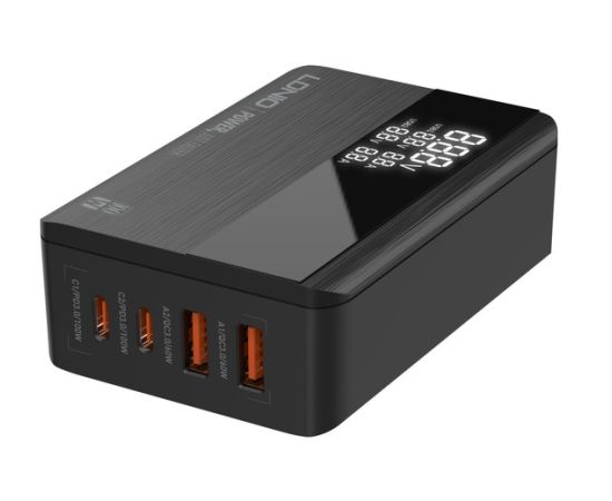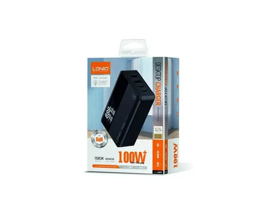 Сетевое зарядное устройство GaN LDNIO A4809C/ + LED дисплей/ PD+PPS+SCP+QC 4+/ 4 USB/ Выход: 3.3-20V, max 100W/ Черный