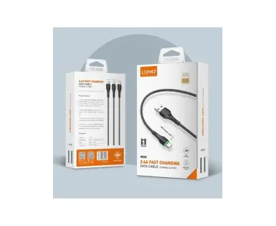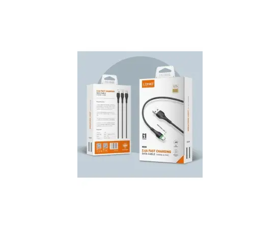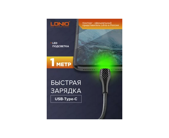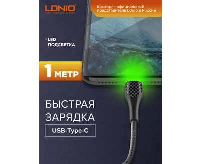 Кабель LDNIO LS521/ USB + Type-C/ 1m/ 2.4A/ LED подсветка/ медь: 86 жил/ Серый