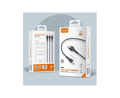Кабель LDNIO LS522/ USB + Micro/ 2m/ 2.4A/ LED подсветка/ медь: 112 жил/ серый
