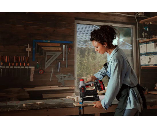 Конструктивные особенности: Кейс в комплекте, Защитный кожух, Индикатор заряда аккумулятора, Подключение пылесоса, Рукоятки с резиновым покрытием, Отвод пыли, Система отвода опилок