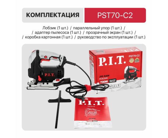 Обновлённая версия отлично зарекомендовавших себя лобзиков PIT. Обновленный дизайн, улучшенная эргономика, долгий срок службы. Электрический лобзик PST70-C2 отлично подойдет для прямых, наклонных и криволинейных распилов различных материалов: дерева, деревосодержащих композитных материалов, панелей, пластика, металла.