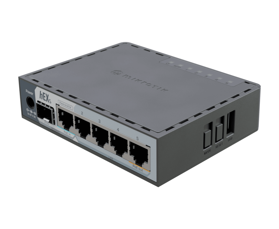 Маршрутизатор MikroTik E60iUGS HEX S(2025), 2 ядра (950МГц) 5х 1G RJ45, SFP, USB, раздача PoE