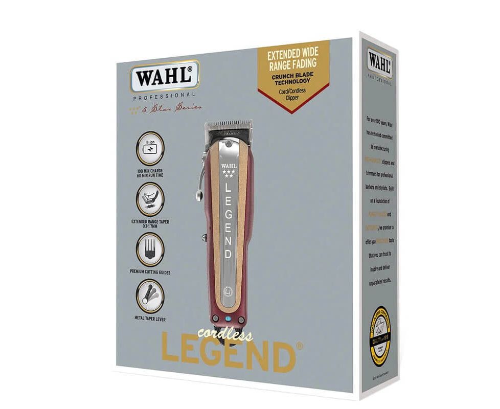 Профессиональная беспроводная парикмахерская машинка Wahl Legend Cordless 5 Star 08594-016 разработана для стрижки равномерных фейдов (fading), легкого сведения или чистовых стрижек. Беспроводная Wahl Legend комплектуется ножевым блоком Wedge Blade с двойным рядом зубцов. Нож сделан из обогащенного углеродом стального сплава, который придет лезвиям твердость. Финишная отделка хромом снижает риск коррозии при стрижке на влажном волосе.