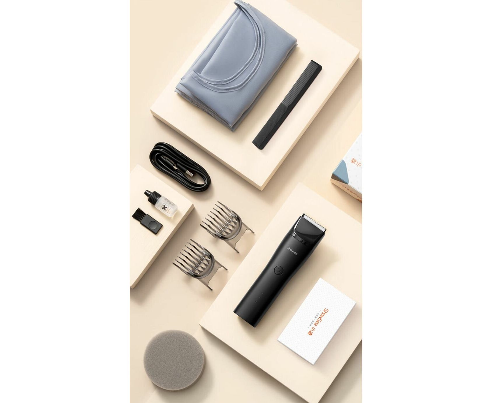 2 насадки, Кабель для зарядки USB-TypeC, Машинка для стрижки, Щеточка для чистки