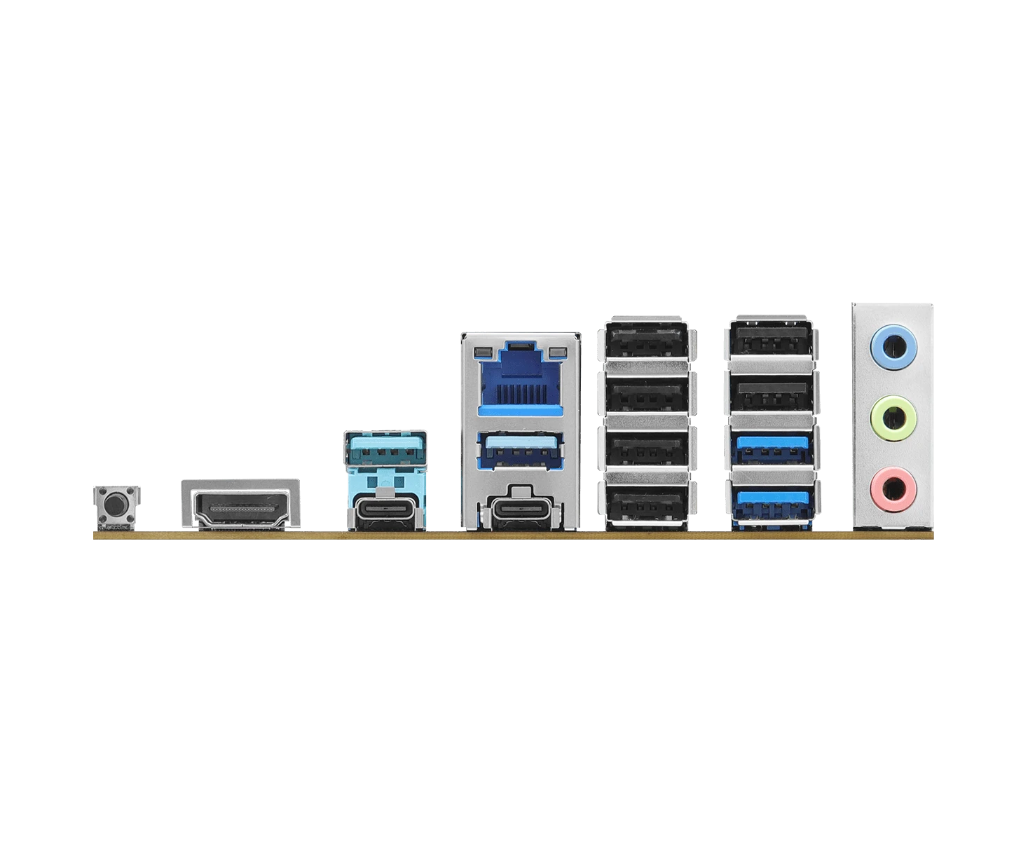 6 x USB 2.0, 4 x USB 3.2 Gen1, USB 3.2 Gen1 Type-C, USB 3.2 Gen2 Type-C, HDMI, RJ-45