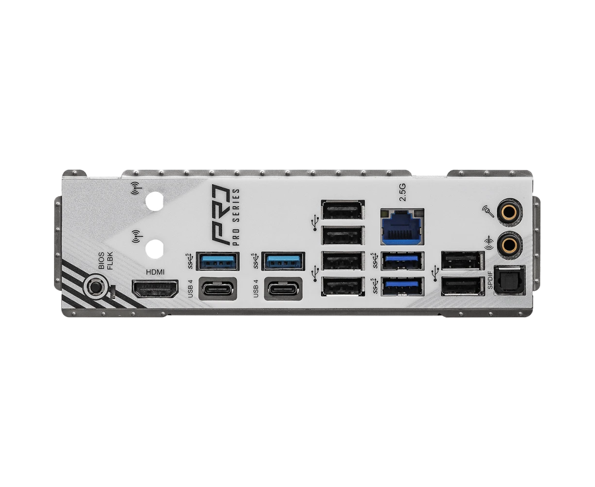 6 x USB 2.0, 4 x USB 3.2 Gen1, 2 x USB 4 Type-C, HDMI, RJ-45, S/PDIF (оптический)