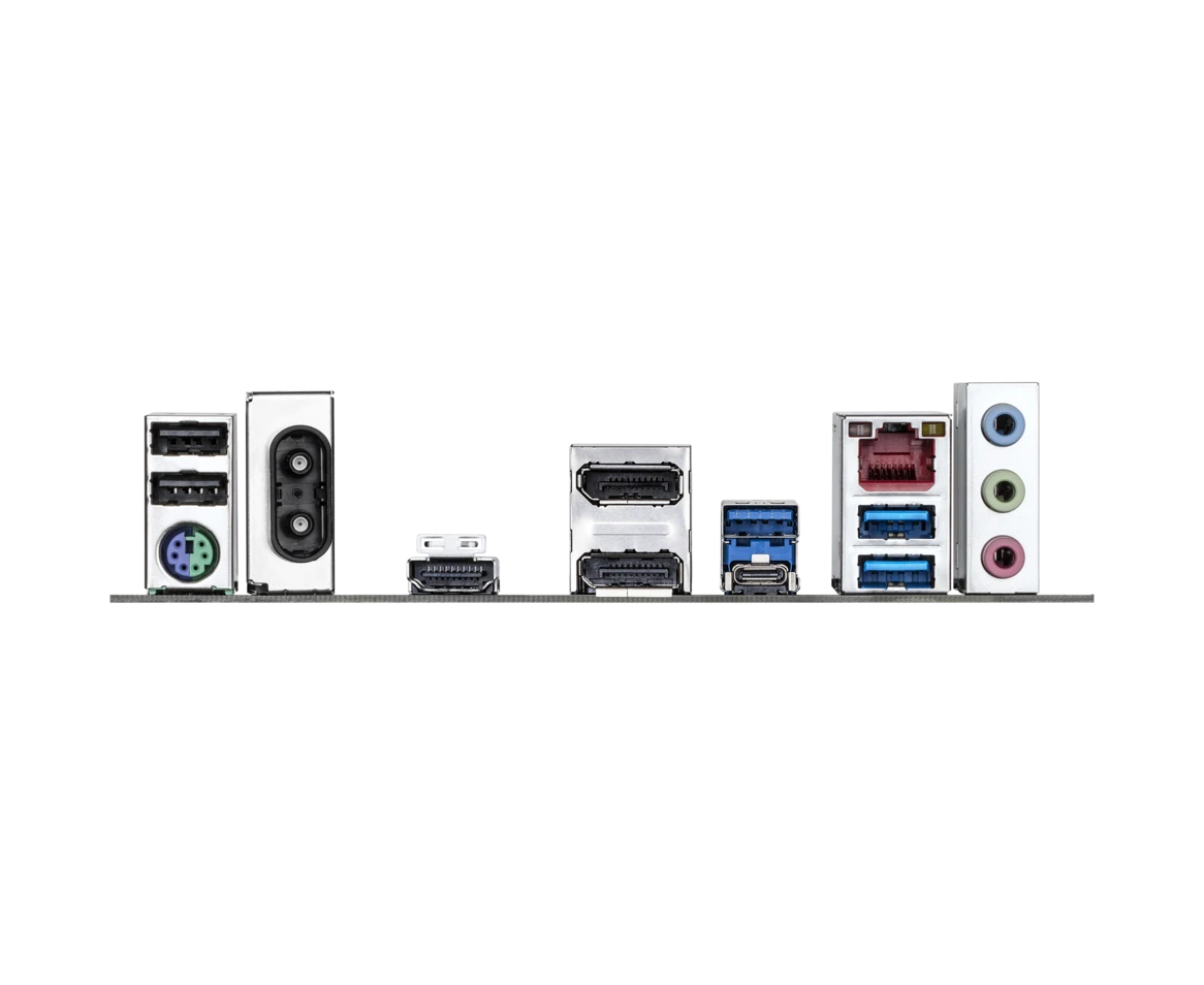 PS/2, 2 x USB 2.0, 3 x USB 3.2 Gen1, USB 3.2 Gen2 Type-C, HDMI, 2 x DisplayPort, RJ-45