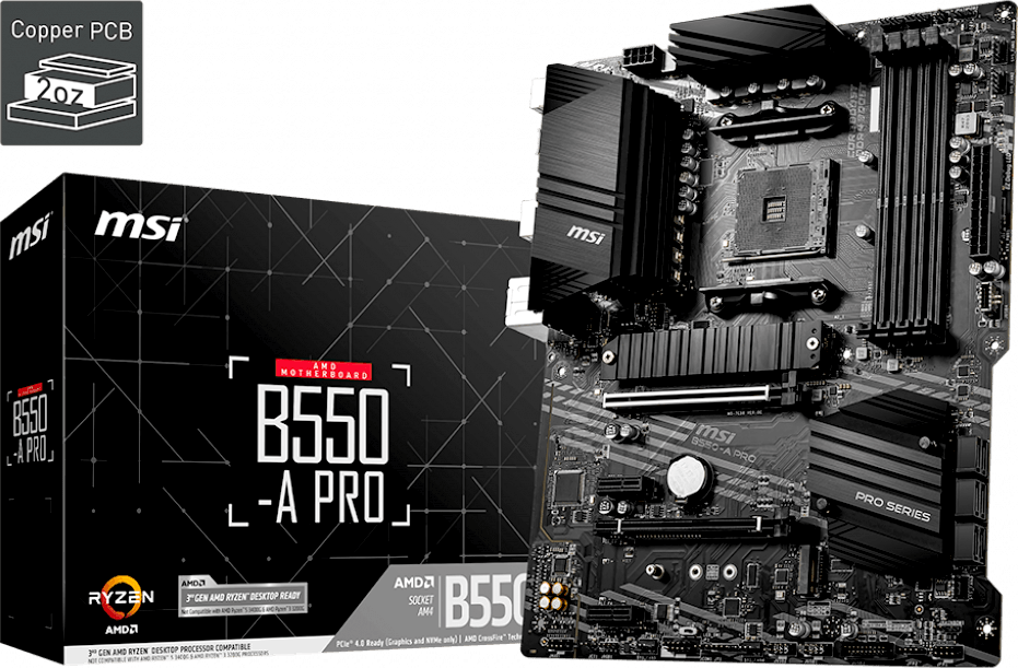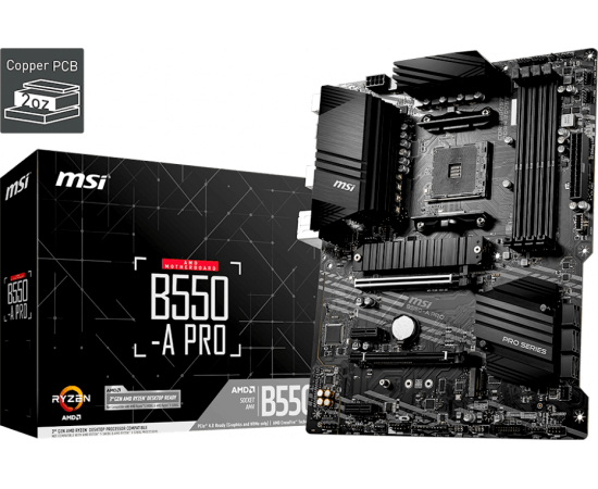 MB sAM4 MSI B550-A Pro, AMD B550, 4xDDR4-3200 МГц, 2xPCI-Ex16, 2xM.2, Standard-ATX