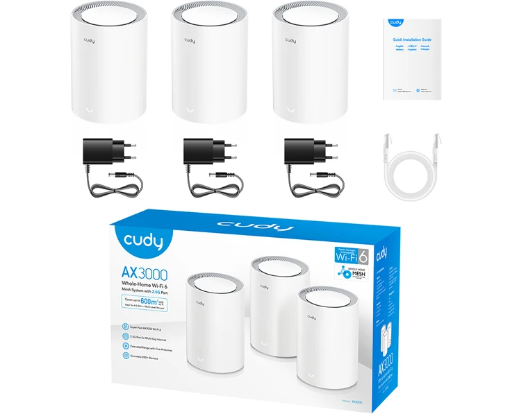 Mesh-система Cudy M3000(3-Pack) V2 2,5-гигабитная Wi-Fi 6 AX3000, 2,4/5ГГц, до 2976Мбит/с, LAN 1x1Гбит/с