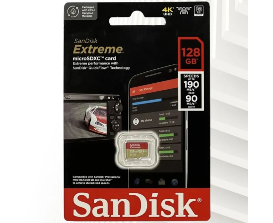 MicroSD 128GB SanDisk Class 10 Extreme A2 UHS-I U3 (190/90 Mb/s) без адаптера