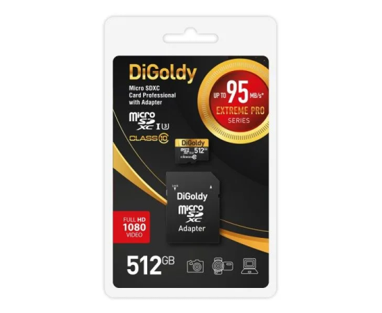 MicroSDXC 512GB Digoldy Class 10 Extreme Pro UHS-I U3 (95 Mb/s) + SD адаптер