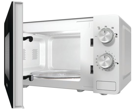 Микроволновая печь Gorenje MO20E1W может быть использована для приготовления пищи, а также разогрева и размораживания пищевых продуктов. Устройство имеет механическое управление в виде поворотных переключателей. Автоматическая дверца модели открывается при помощи кнопки. Таймер позволяет настроить оптимальное время для разогрева нескольких порций. Программа разогрева рассчитана на пять режимов мощности микроволн. Пользователь может выбрать при запуске тип продукта и его вес, чтобы система автоматически определила оптимальную интенсивность работы, или отрегулировать самостоятельно при помощи поворотных переключателей, расположенных на панели управления. Для подготовки полуфабрикатов к дальнейшей тепловой обработке в устройстве предусмотрен режим размораживания. Гладкое эмалированное покрытие камеры микроволновой печи Gorenje MO20E1W легко очищается от следов жира и прочих загрязнений.