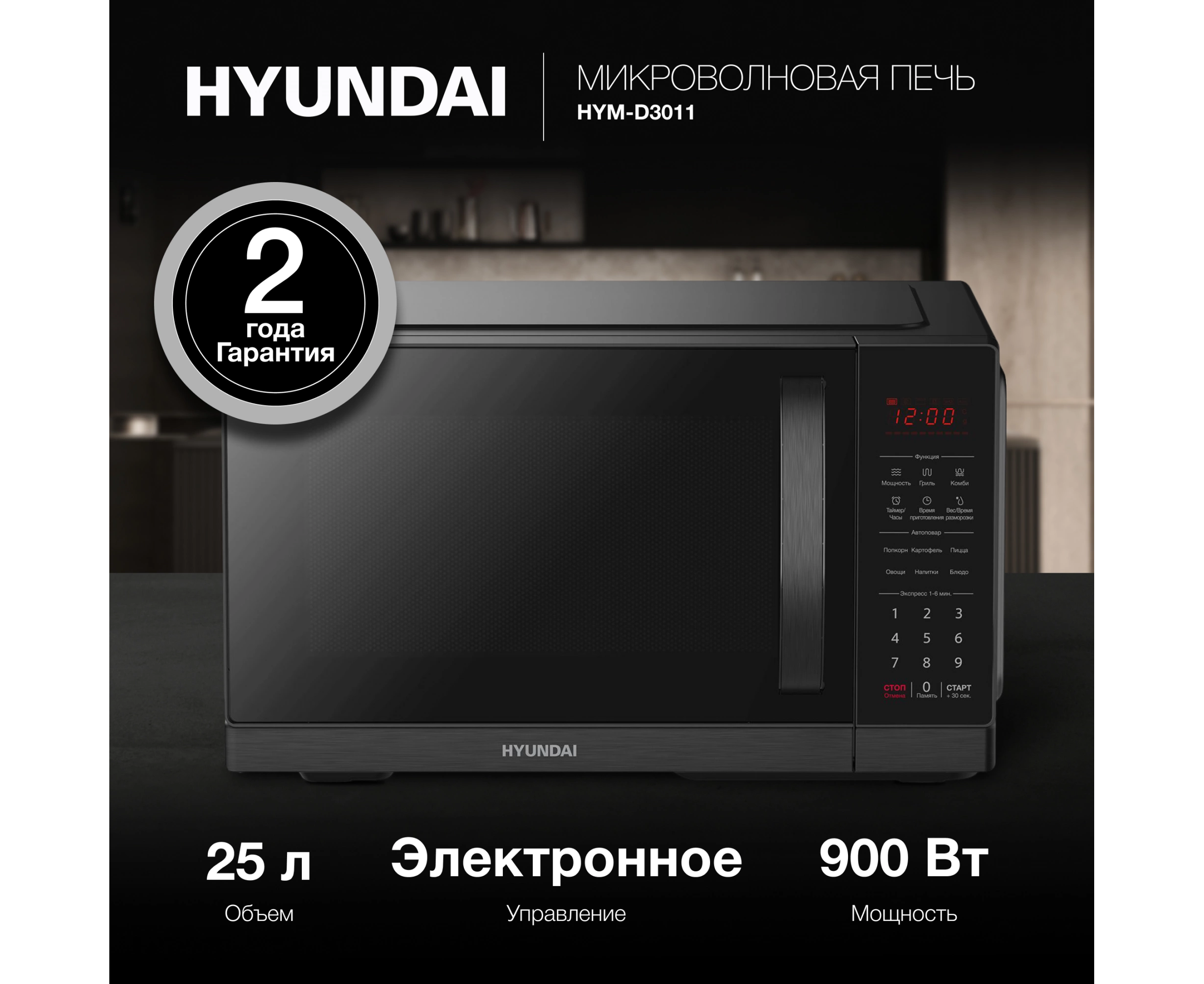 Микроволновая печь Hyundai HYM-D3011 черный