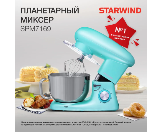 Миксер планетарный Starwind SPM7169 1600Вт бирюзовый