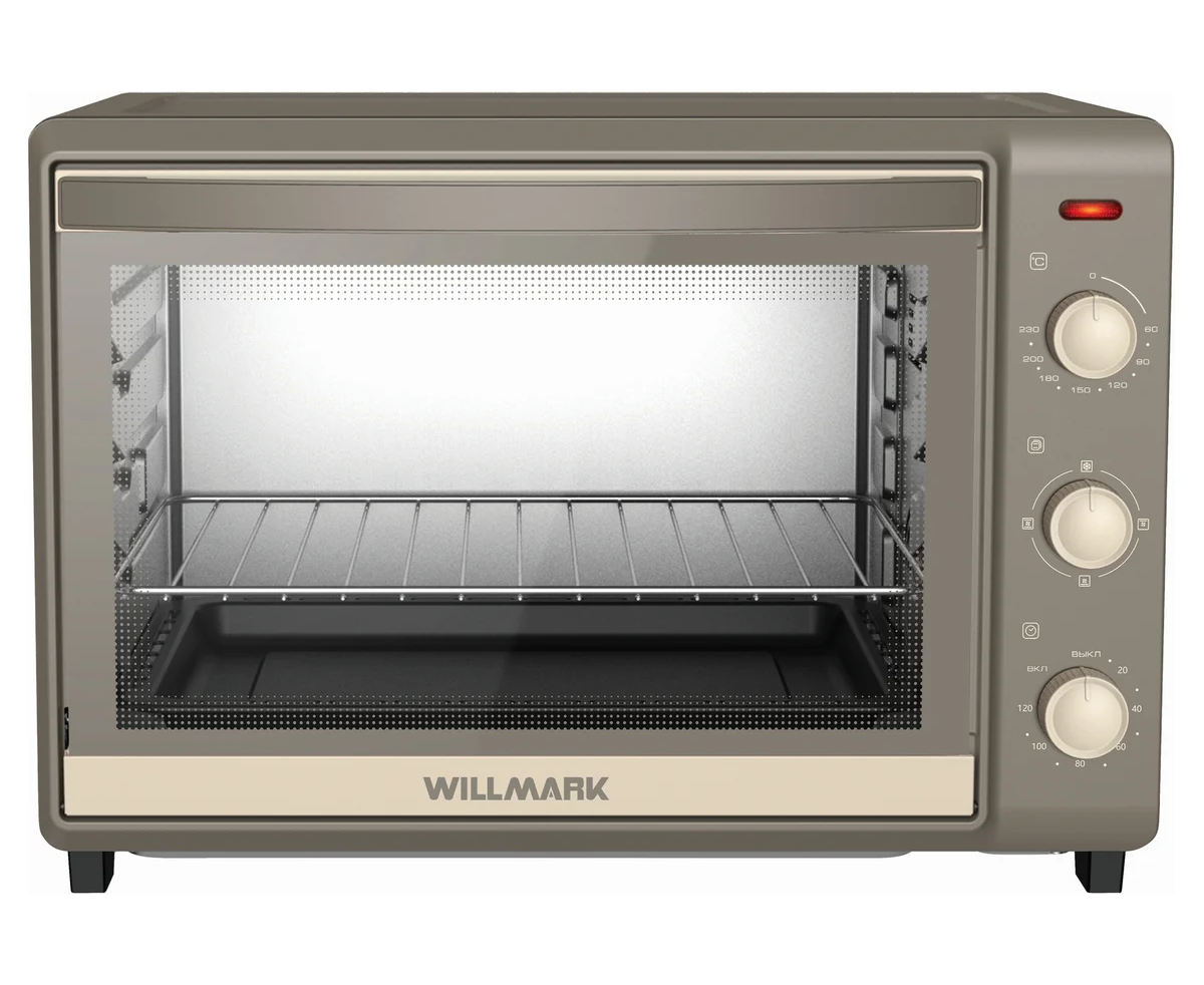 Мини-печь WILLMARK WOC-452GB (45л,конвекц,таймер,4 линейных ТЭНа,реж.беспрерывн.раб,беж/сер,1800Вт)