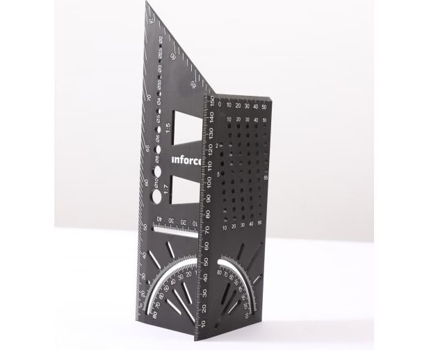 Многофункциональный разметочный угольник Inforce 150 мм 06-11-81 позволяет работать с 3D материалами, такими как деревянные балки, трубы. Имеет ограничители угла 45 ° и 90 °. С помощью угольника возможно определения размера сверла, переноски измерения, рисование параллельных линий.