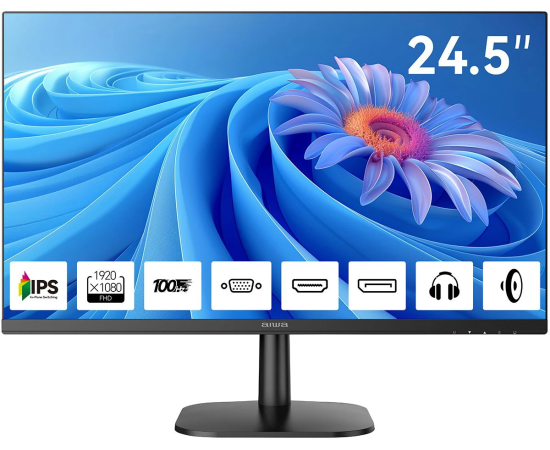 Монитор AIWA MD2511 Black IPS, 1920x1080, D-Sub+HDMI+DP, 4 ms, 178°/178°, 300 cd/m, 1000:1, 100Hz, Spk, внутр БП