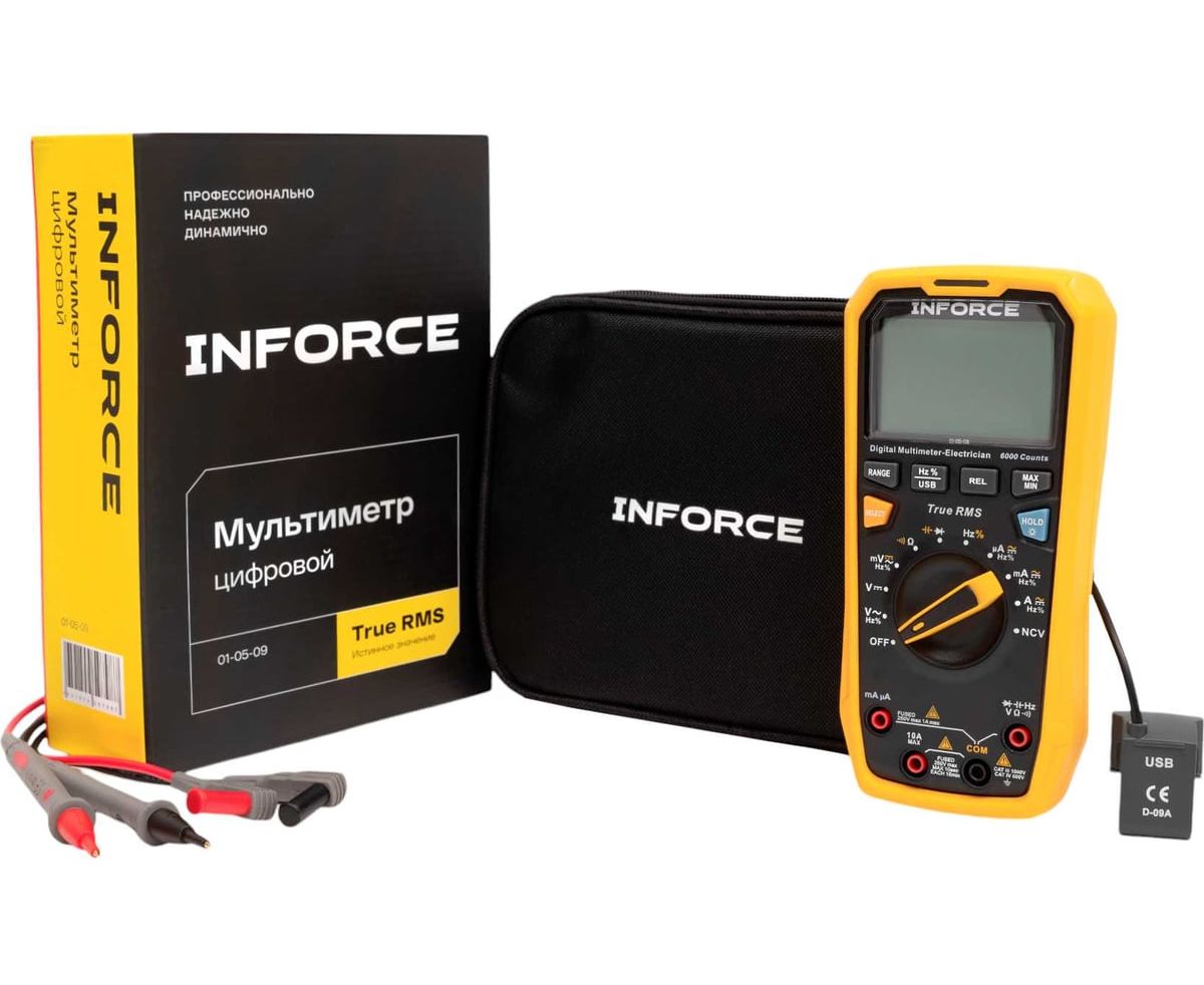 Цифровой мультиметр Inforce 01-05-09 - это надежный цифровой мультиметр с функцией измерения истинных среднеквадратичных значений (True RMS).