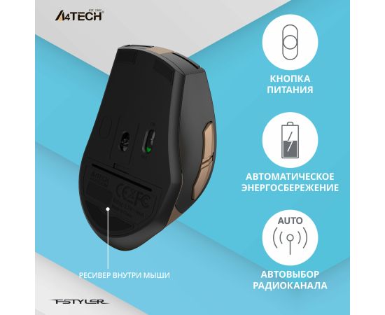 Мышь A4Tech Fstyler FG35 бронзовый/черный оптич. 2000dpi беспров. USB 6but (FG35 BRONZE)