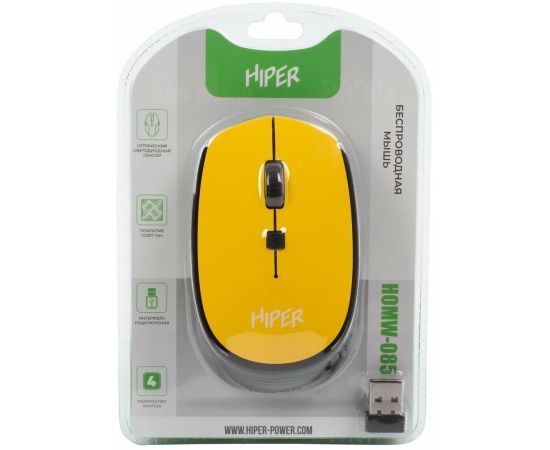 Мышь беспроводная HIPER HOMW-085 1600dpi, желтый