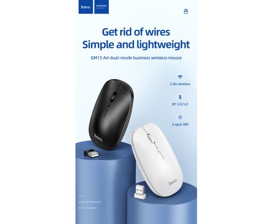 Мышь беспроводная HOCO GM15 Art dual-mode business (белый)