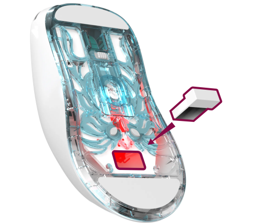 Стильная и удобная игровая беспроводная мышь с уникальными особенностями. Вес мыши всего 66 грамм, что может обеспечить игроку значительное преимущество в шутерах от первого лица. Максимальное разрешение 10 000 dpi. Мышь имеет 2 режима подключения: по Bluetooth или по радио-каналу 2.4ГГц (через USB-адаптер). Встроенный аккумулятор на 300 мАч обеспечивает до 100 часов работы мыши.