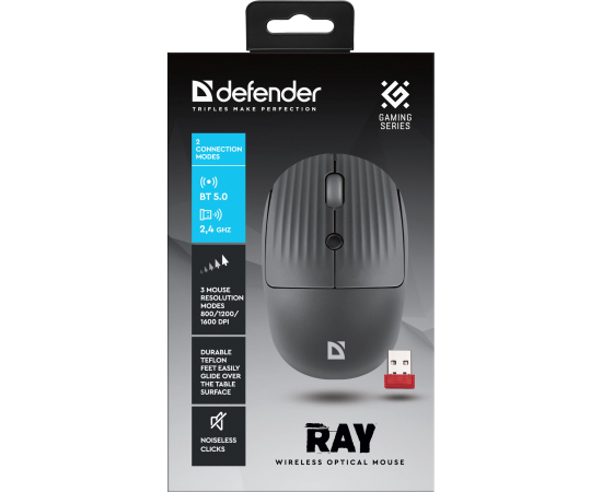 Мышь беспроводная DEFENDER Ray MM-032 серый,2.4G+BT,4кнопки,1600dpi