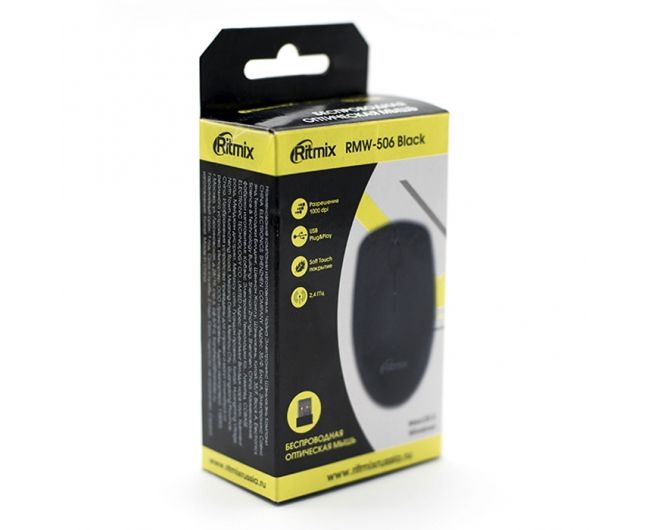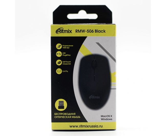 Мышь Ritmix RMW-506 Black, Wireless, 2 + колесо-кнопка, 1000 dpi, USB, оптическая