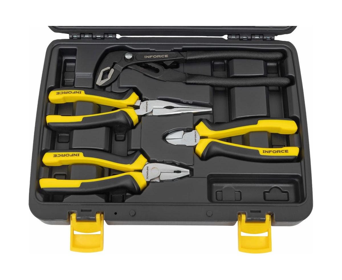 Набор губцевого инструмента Inforce 4 шт 06-25-06 - это профессиональный набор инструмента для слесарных и монтажных работ.