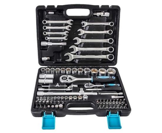 трещотка 1/4" 24 зубца 155мм, удлинители 1/4" 50, 100мм, удлинитель гибкий 1/4" 150мм, отверточная рукоятка 1/4" 150мм,вороток Т-образный 1/4" 115мм, карданный шарнир 1/4" 35мм, адаптер-переходник 1/4"SQх1/4"HEX 25мм, трещотка 1/2" 24 зубца, 255мм, удлинители 1/2" 125, 250мм, адаптер для воротка 3/8" - 1/2" 42мм, карданный шарнир 1/2" 70мм, держатель бит 1/2"