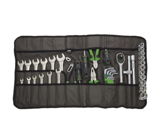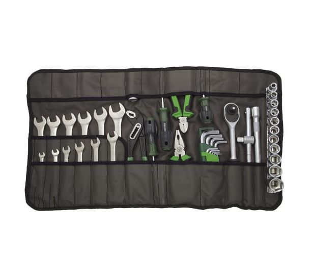 Набор инструмента 1/2" в сумке 44шт Дело Техники 620943 включает в себя разнообразное множество ручных инструментов и приспособлений для выполнения широкого спектра ремонтно-сборочных работ. Такой набор подойдет для использования в быту, автосервисах и прочих столярно-слесарных мастерских. Все компоненты удобно расположены в сумке из масло-водоотталкивающей ткани Oxford.