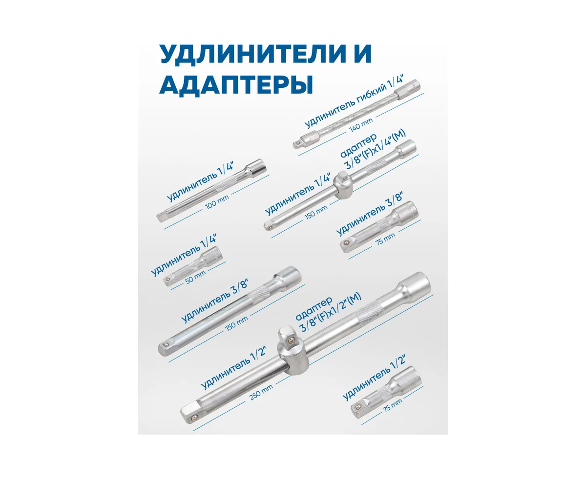 - Рукоятка для головок: 150 мм