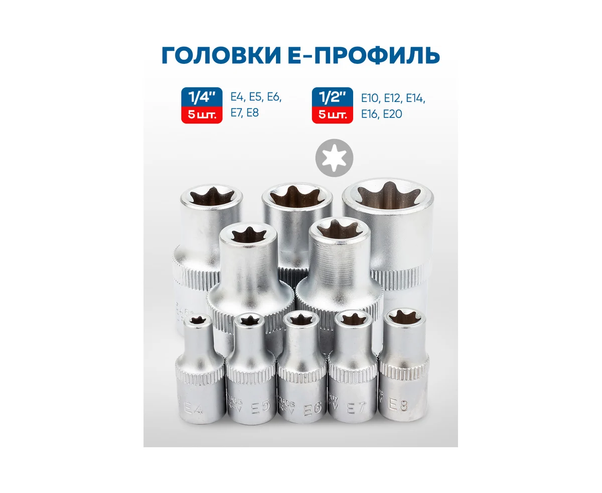 - Головки Е-профиль: Е4, Е5, Е6, Е7, Е8