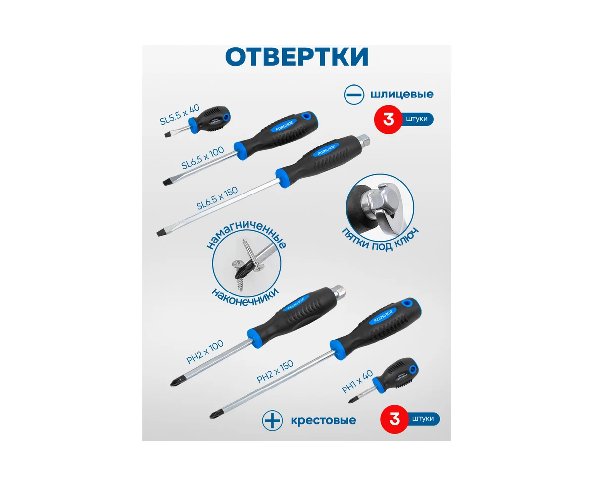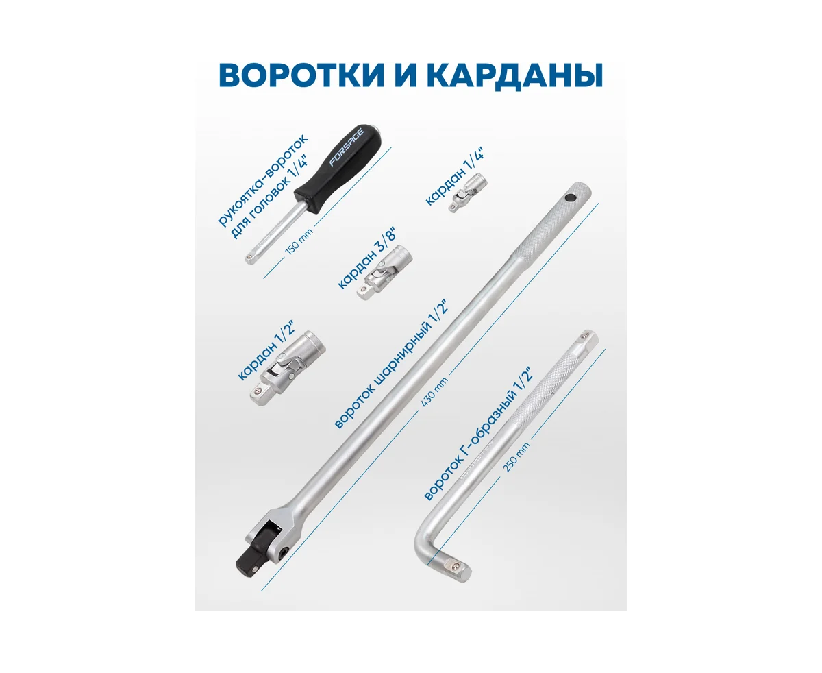 Набор подходит для ремонта автомобилей, мелких строительных работ, дачных и домашних задач. Будь то сборка мебели, починка техники или ремонт машины, Forsage справится с любыми задачами.