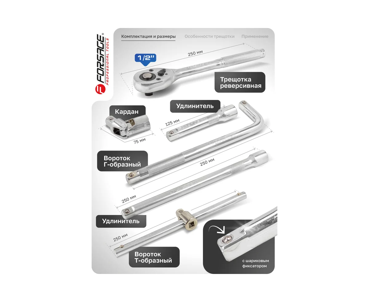 Набор инструментов Forsage F-4245B-5(57880) 24пр. 1/2" (6гр)