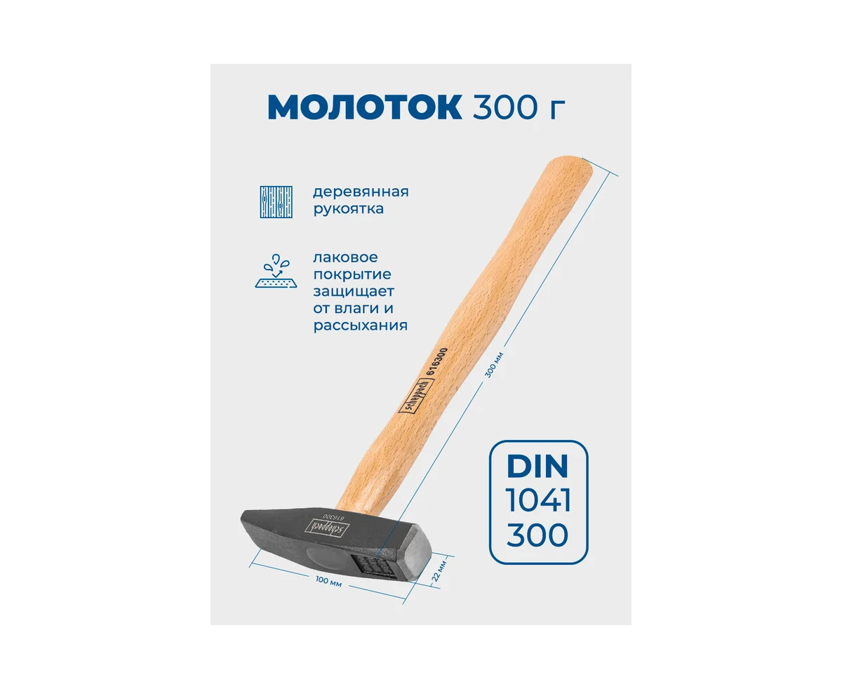 - Молоток с деревянной ручкой 300 гр.;