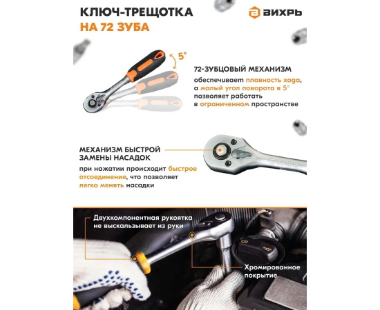 Удлинители 75, 250 мм вороток Г-образный, вороток Т-образный, вороток шарнирный, карданный шарнир, трещотка.
