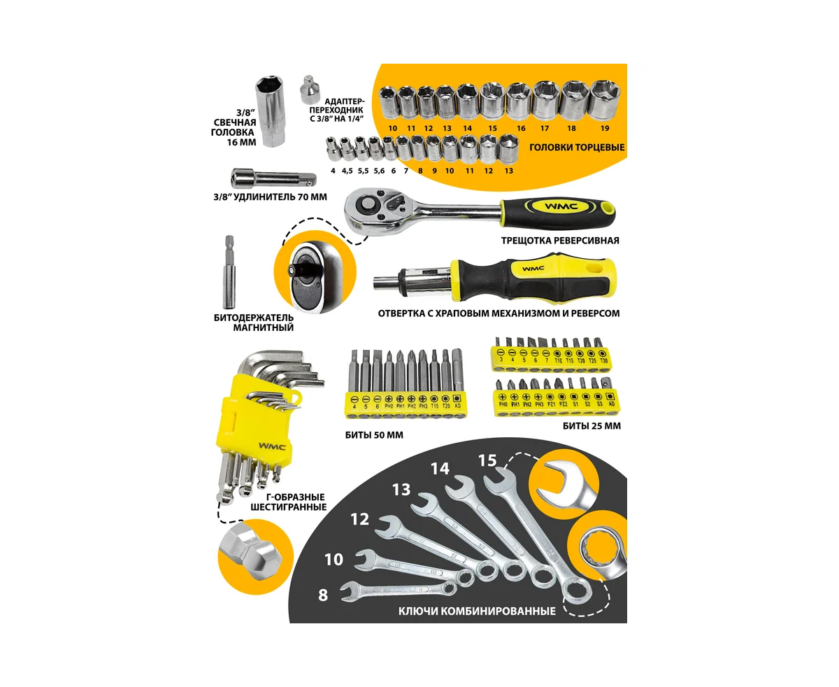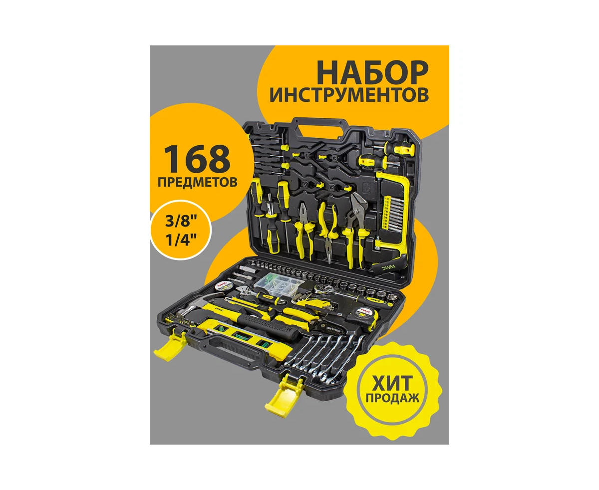 Набор инструментов WMC TOOLS WMC-30168 Top Done(50798) 168пр. 1/4'', 3/8", 6гр, 4-19мм