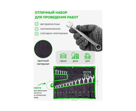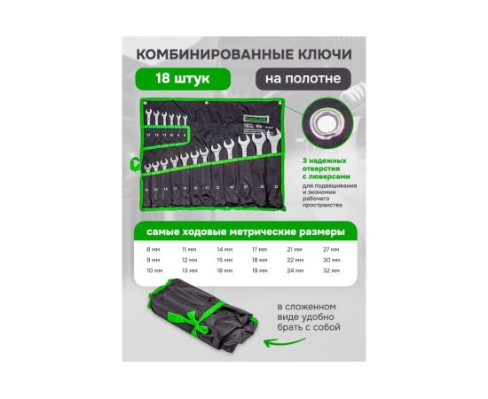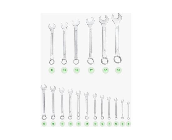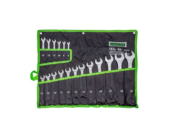 Набор ключей комбинированных ForsLine FL-5181P(54263) 18пр.(8-19, 21, 22, 24, 27, 30, 32мм), на полотне