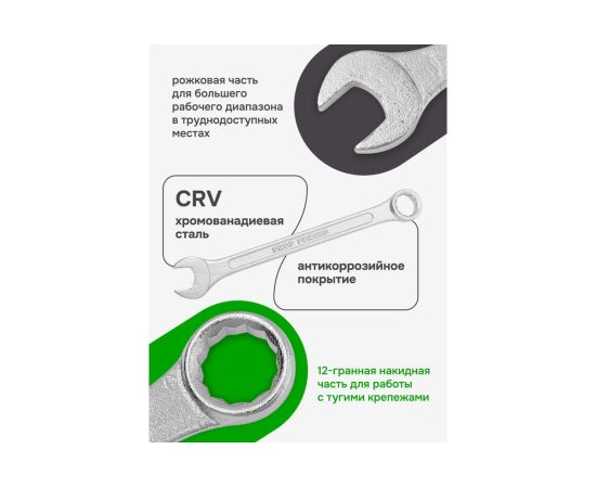 Набор комбинированных ключей - это незаменимый инструмент в любом профессиональном или домашнем наборе инструментов. Изготовленный из хромованадиевой стали, он обеспечивает надежное и прочное соединение болтов и гаек. Эргономичная форма ручки позволяет удобно работать с ключом, не утомляя руки. Не забудьте проверить соответствие размеров требуемой конструкции или механизма перед использованием. Используется как для производственных нужд, ремонта авто, так и для набора домашнего инструмента.