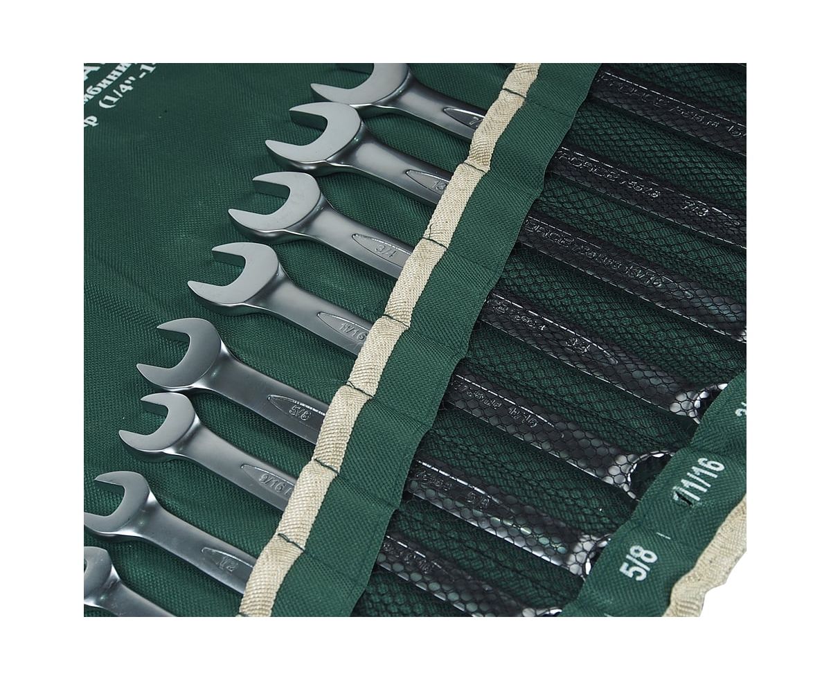 Ключи комбинированные, набор 16 предметов на полотне предназначен для выполнения широкого спектра задач, связанных с монтажом, демонтажем и ремонтом.