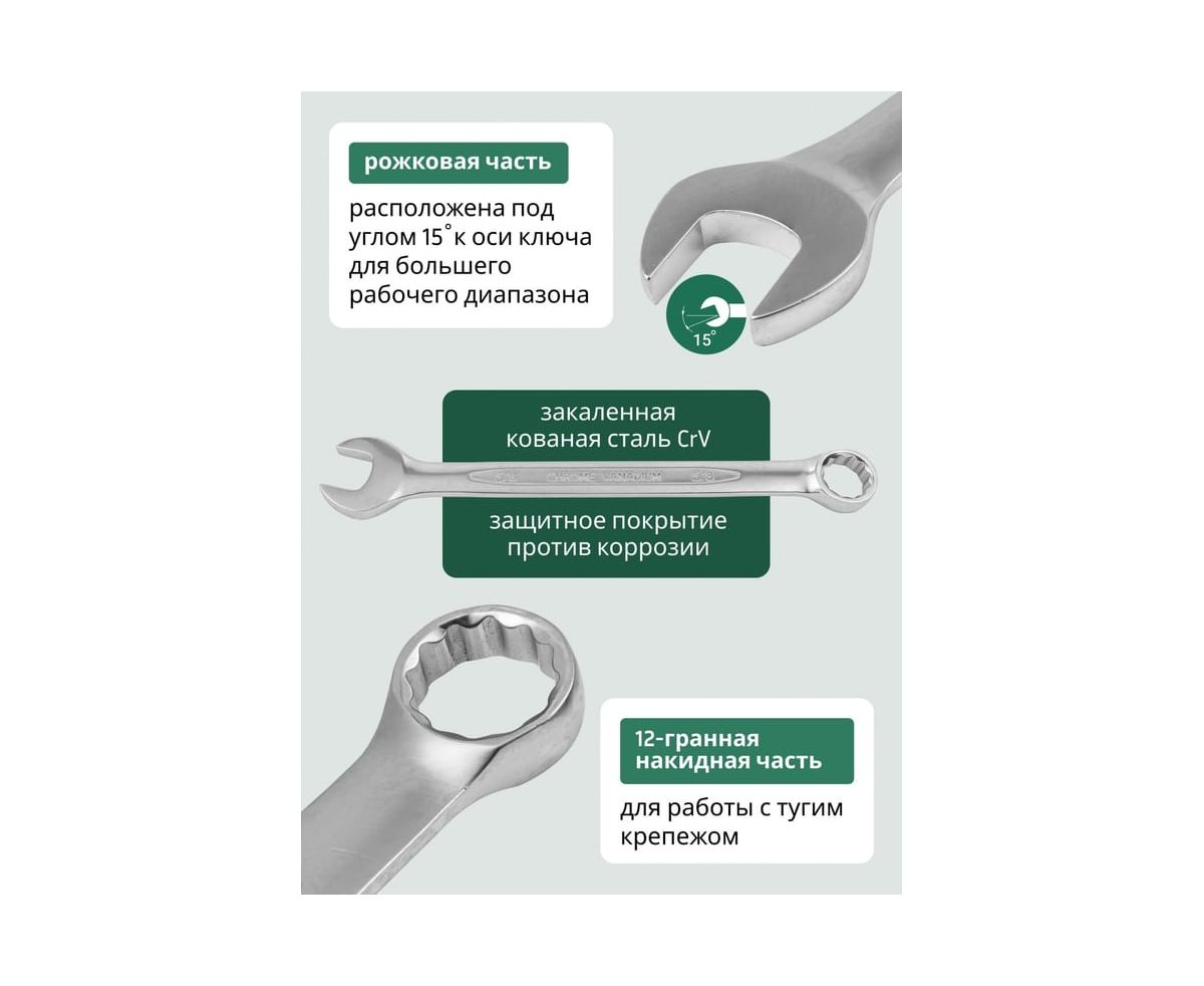Преимущества набора комбинированных дюймовых ключей Rockforce RF-5161S(47125)