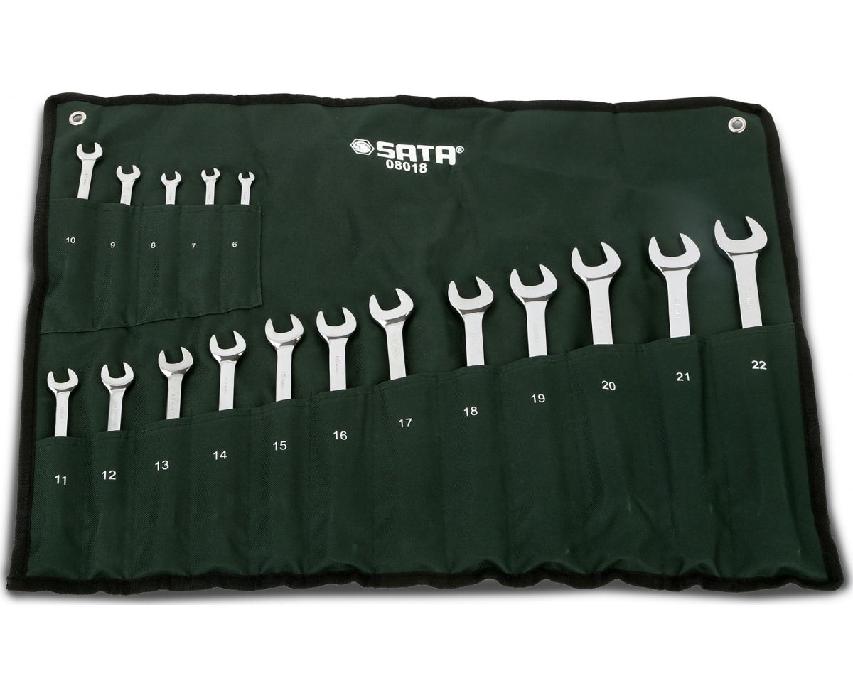 Набор ключей комбинированных Sata 08018 с накидным наконечником из 17 предметов метрический