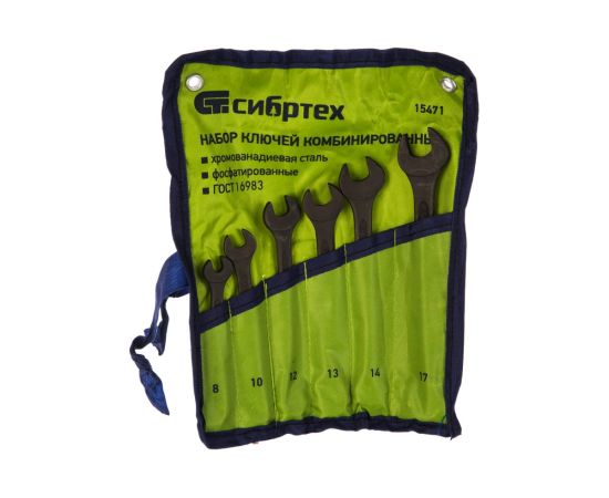 Набор ключей комбинированных Сибртех 15471 8-17мм, 6шт, CrV, фосфатированные, ГОСТ 16983