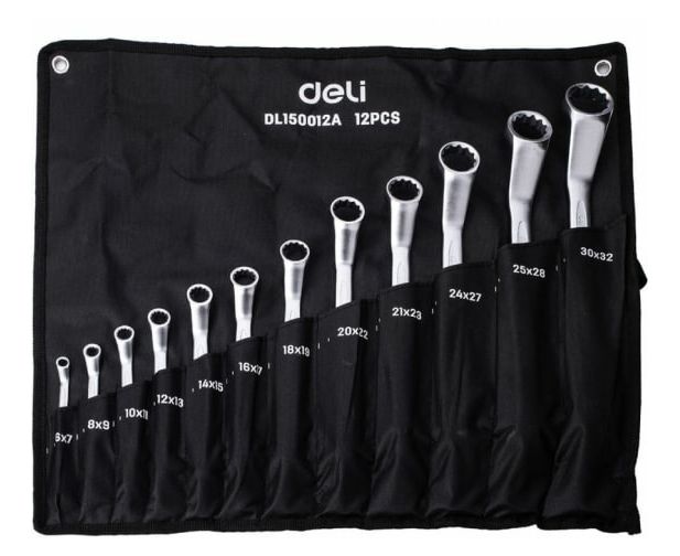 Набор ключей накидных Deli DL150012A изогнутых 12 шт 6x7, 8x9, 10x11, 12x13, 14x15, 16x17, 18x19, 20x22, 21х23, 24х27, 25х28, 30х32