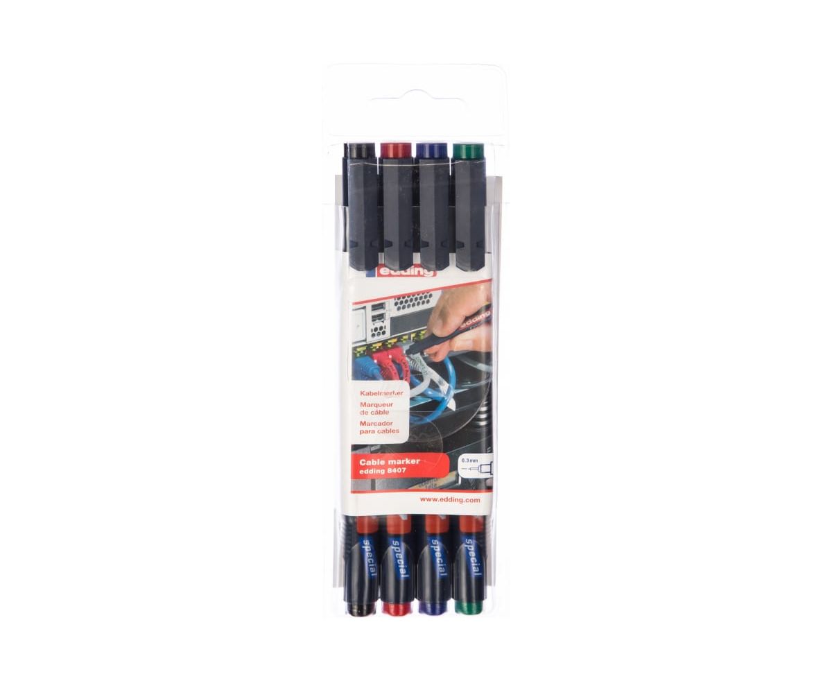 Набор маркеров для маркировки кабелей Edding E-8407#4S 0.3мм/черный,красный,зеленый,синий